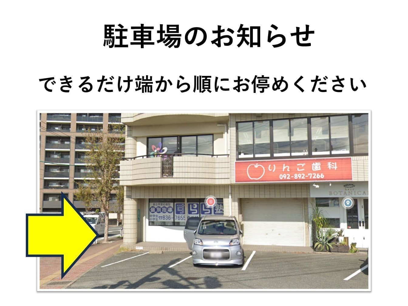 遠方からお越しの場合、姪浜駅やバス停から距離がありますのでお車かタクシーのご利用をお勧めします。